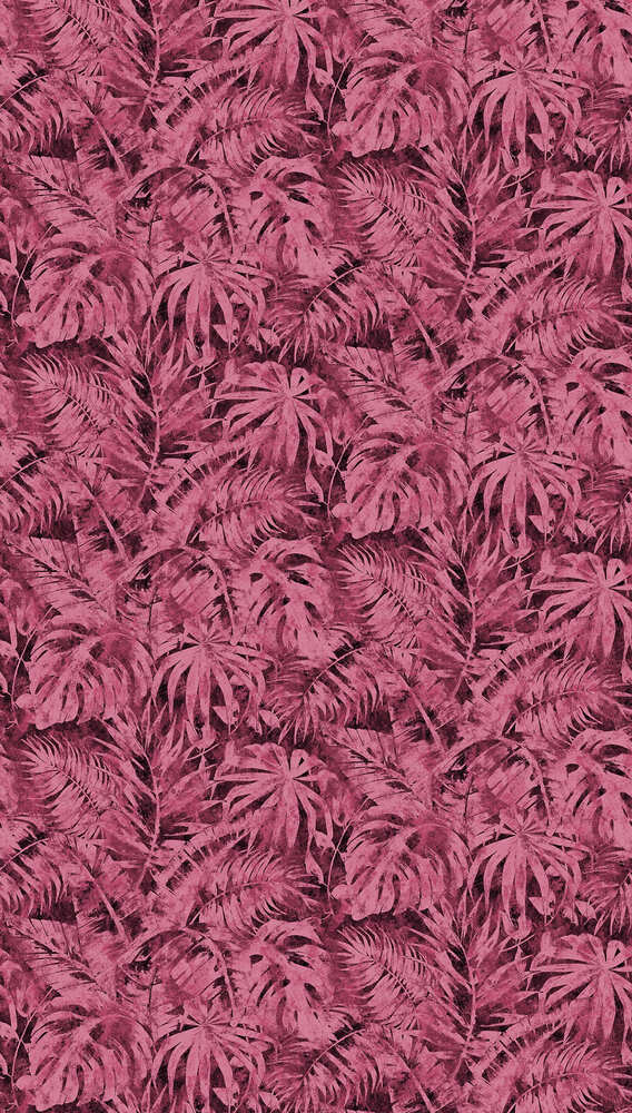 Mural digital diseño natural de hojarasca de palmeras en color rosa magenta y negro. Patrón permite repetición.