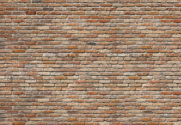 Fotomural efecto pared de ladrillo obra vista naranja en calidad papel. Incluye cola.