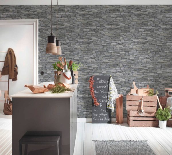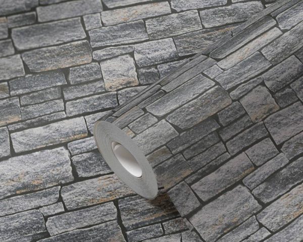 Medidas: 10,05 m x 0,53 m. Case: 53 / 26 cm (offset match). Calidad: Tejido no tejido. Estilo: Papel pintado piedra en color gris.