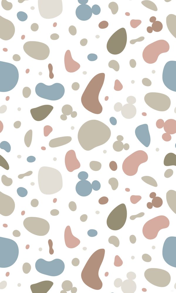 Mural juvenil de impresión digital de manchas pintura de Mickey en colores pastel. No incluye cola.Medidas: 150*250 cm. Presentación: 3 paneles. Calidad: Tejido no tejido.