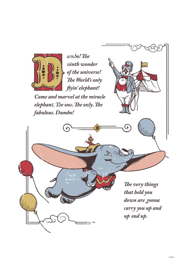 Cuadro de Dumbo de Disney «Dumbo the Flying Elephant» Medidas: 40*60 cm. Presentación: Lienzo impresión digital en marco de madera. Calidad: tejido no tejido.