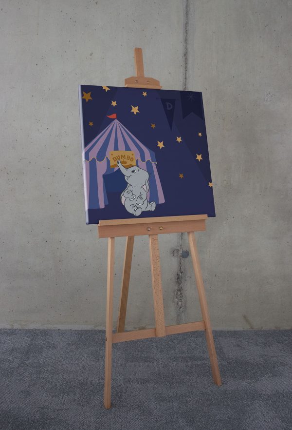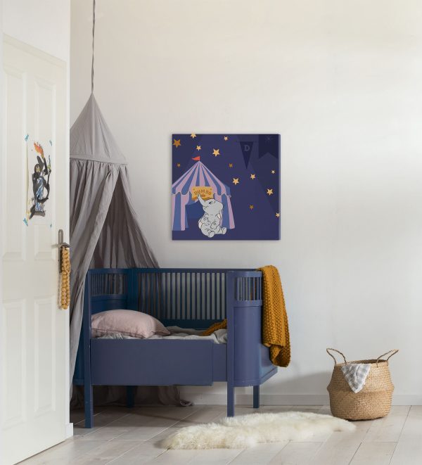Cuadro de Dumbo de Disney «Starry Night with Dumbo» Medidas: 60*60 cm. Presentación: Lienzo impresión digital en marco de madera. Calidad: tejido no tejido.