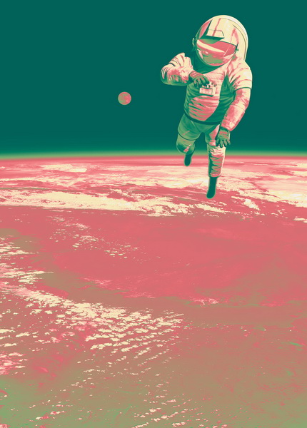 Mural en calidad de papel tejido no tejido de un astronauta caminando por el espacio. Cola no incluida.