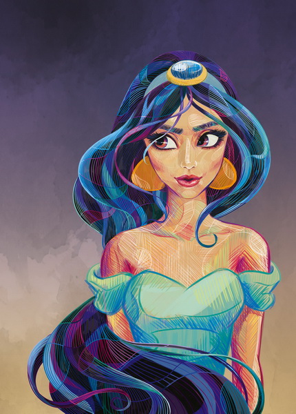 Mural de la princesa Jasmin en calidad de papel tejido no tejido. Cola no incluida.